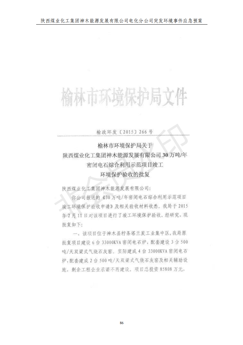 陜西煤業化工集團神木能源發展有限公司電化分公司排污許可證