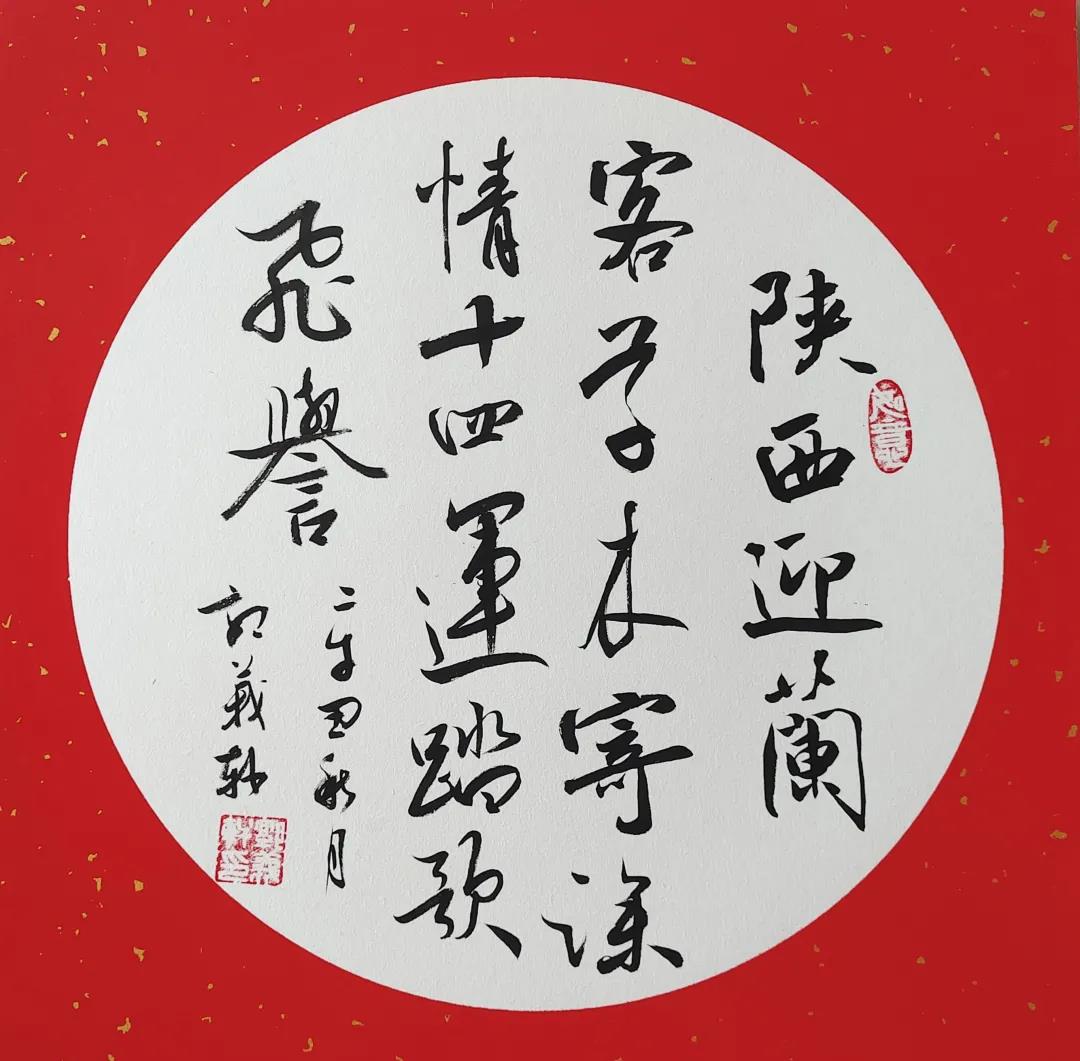 陜西迎蘭客,草木寄深情,十四運踏歌飛譽。(行書)